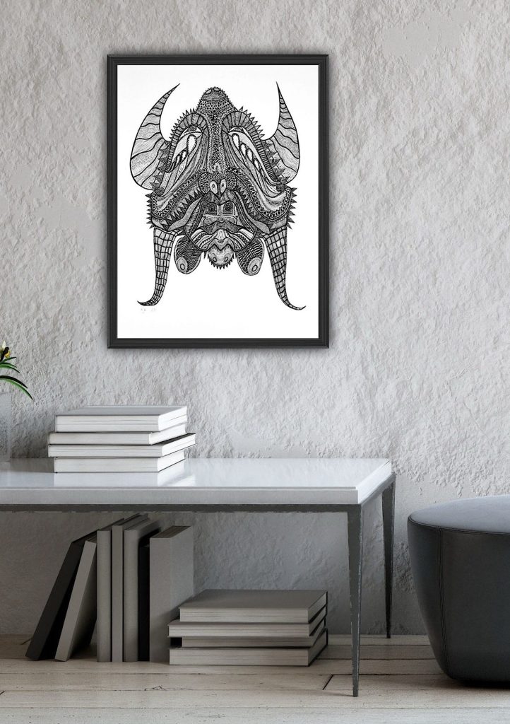 Visual Guide to Print Sizes for Your Home MASK WITH HORNS SMALL MASK HOPE EYE WILL PROTECT YOU LIFE WITHOUT COLOUR Copyright ©Patricia Nobes 2025